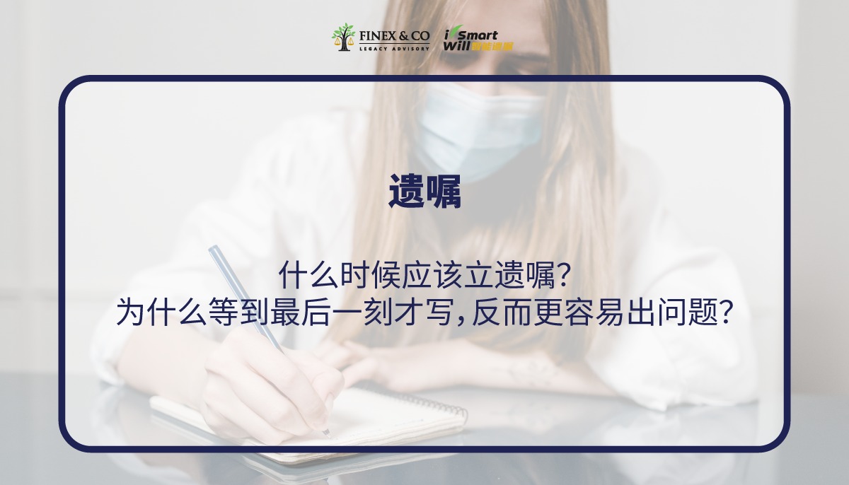 其实从现实角度来看,提早安排遗嘱会更安心。因为遗嘱不是写了就不能改。如果以后情况改变,例如结婚、离婚、孩子出生、资产增加,都可以重新更新遗嘱。